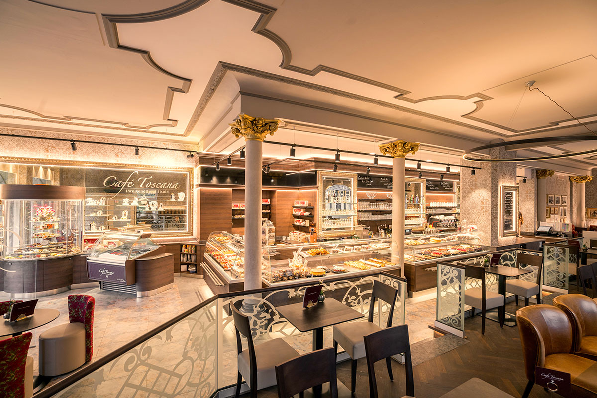Das Café Toscana ist eine Institution in Dresden und zählt in Sachen Genuss zu einer der ersten Adressen. Seit über 120 Jahren trifft man sich hier in gemütlich-elegantem Ambiente. Ein feines Stück Torte und ein guter Kaffee waren im Wandel der Zeiten beim Sachsen stets beliebt. So ist es bis heute. Geändert hat sich die Vielfalt des Angebots. Vom leckeren Frühstück, über ein vollwertiges Mittagessen bis hin zur klassischen Kaffeetafel ist für jeden Genießer etwas dabei.