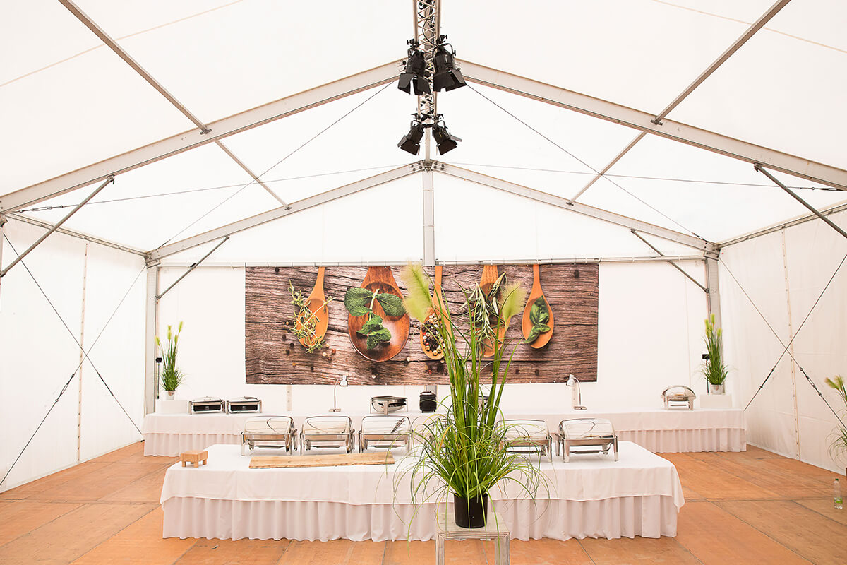 Das Festzelt hat ein maximales Maß von 10 x 24 Metern, kann aber bei Bedarf modular verkleinert oder erweitert werden.