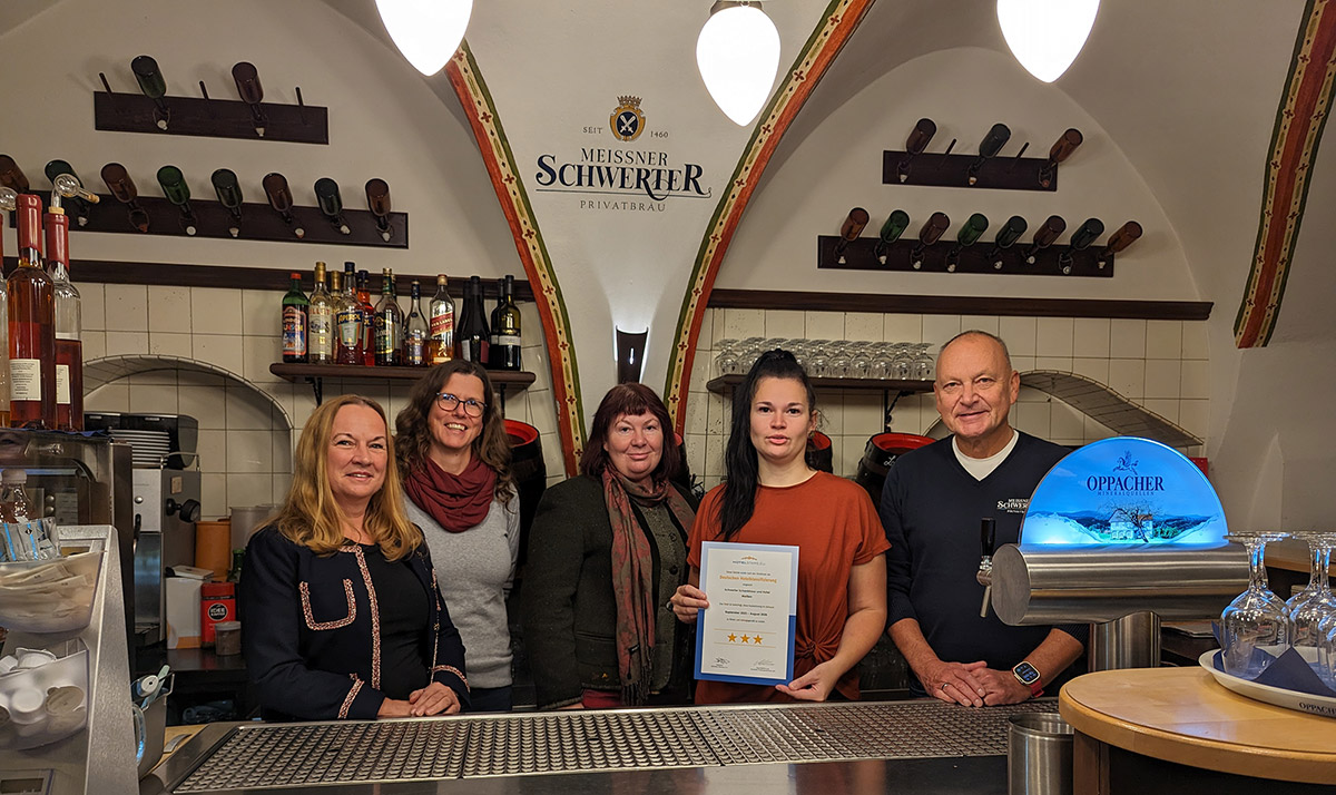 Der Deutsche Hotel- und Gaststättenverband (DEHOGA) hat das Schwerter Schankhaus & Hotel in Meißen erneut mit drei Sternen ausgezeichnet und damit als „Komfort-Hotel für gehobene Ansprüche“ klassifiziert.